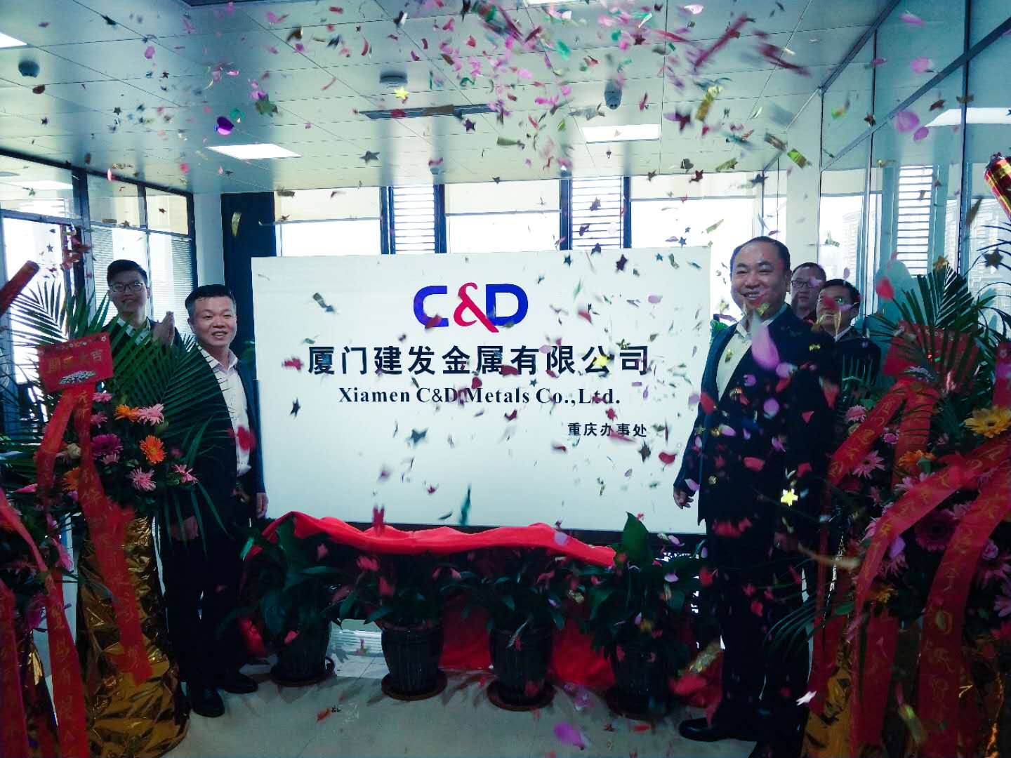 2018年4月18日,廈門(mén)建發(fā)金屬有限公司重慶辦事處正式揭牌成立。建發(fā)金屬總經(jīng)理張清華, 副總經(jīng)理堯偉鯤、孫龍, 總經(jīng)理助理吳輝明出席了本次開(kāi)業(yè)典禮。