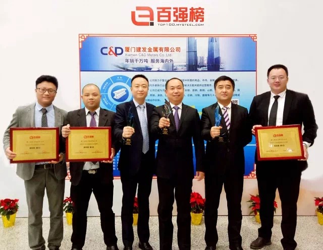2017年12月,超3000家企業(yè)齊聚上海,最大規模的鋼鐵行業(yè)盛會(huì )------上海鋼聯(lián)“中國鋼貿百強榜”權威發(fā)布:廈門(mén)建發(fā)金屬有限公司,綜合第三、板材第一、建材第六。